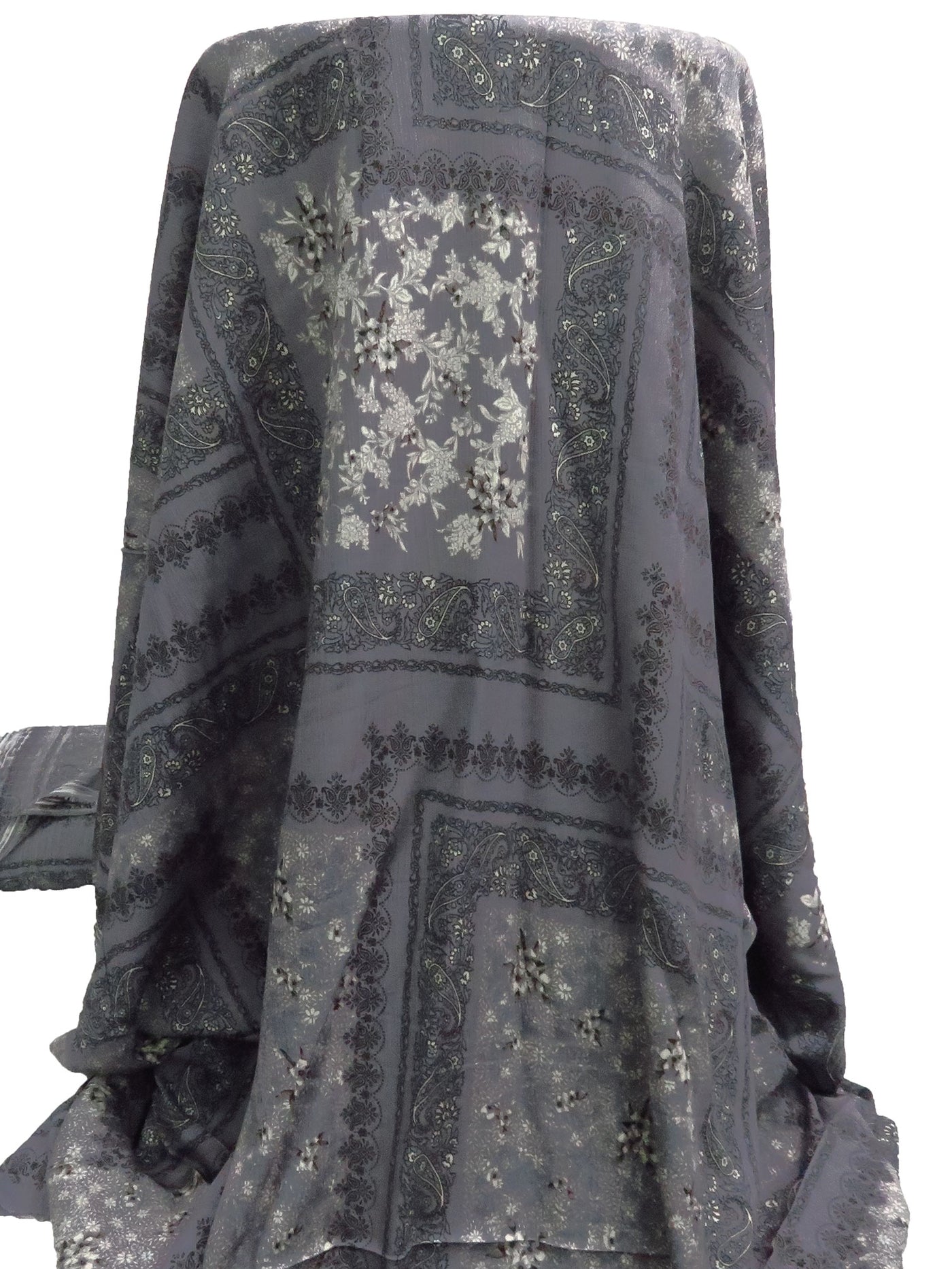 Cool Gray/Black/Off-White/Multi 100% Rayon Patchwork Print Crinkle Challis - Robert Kaufman - 50W