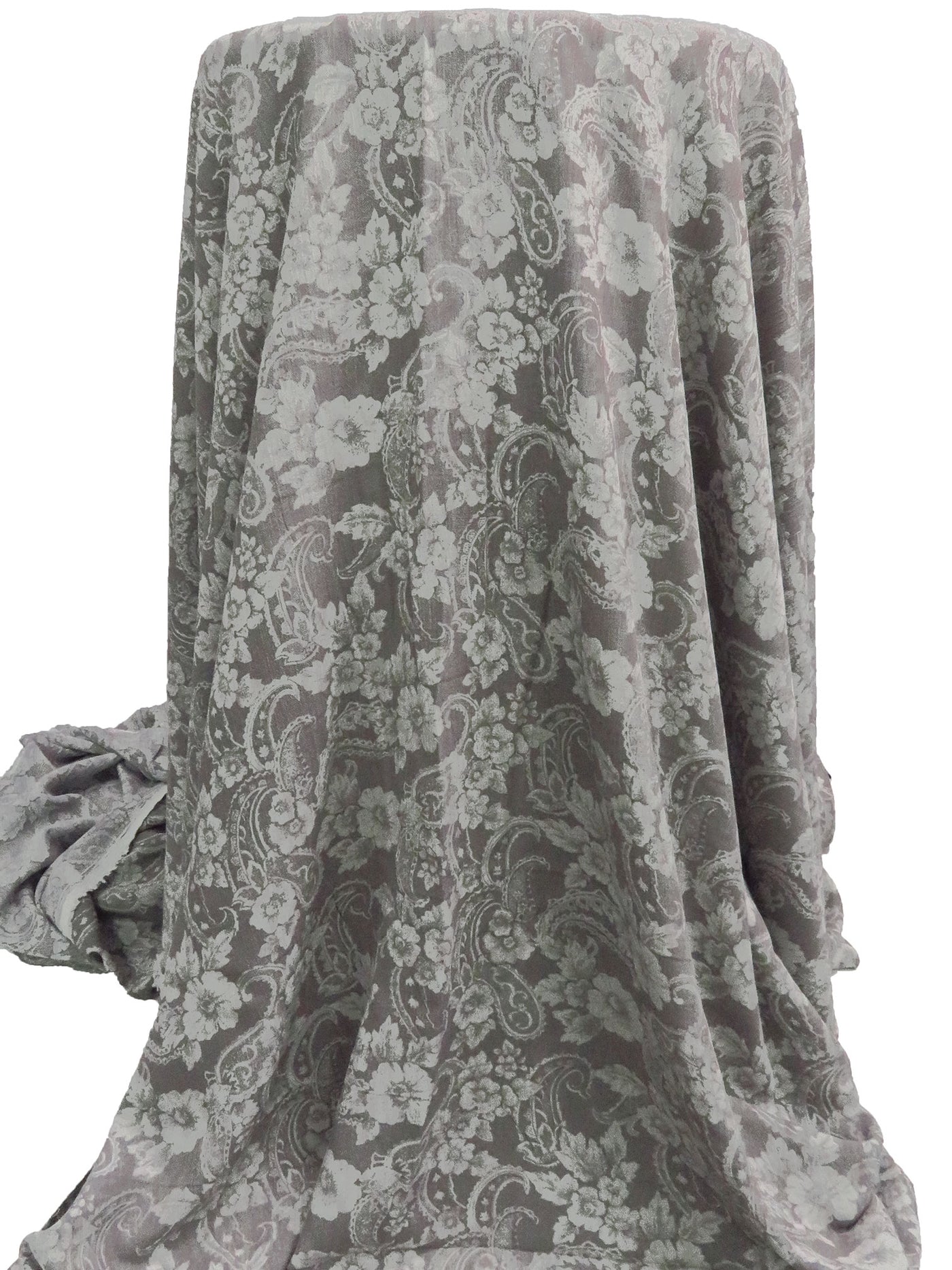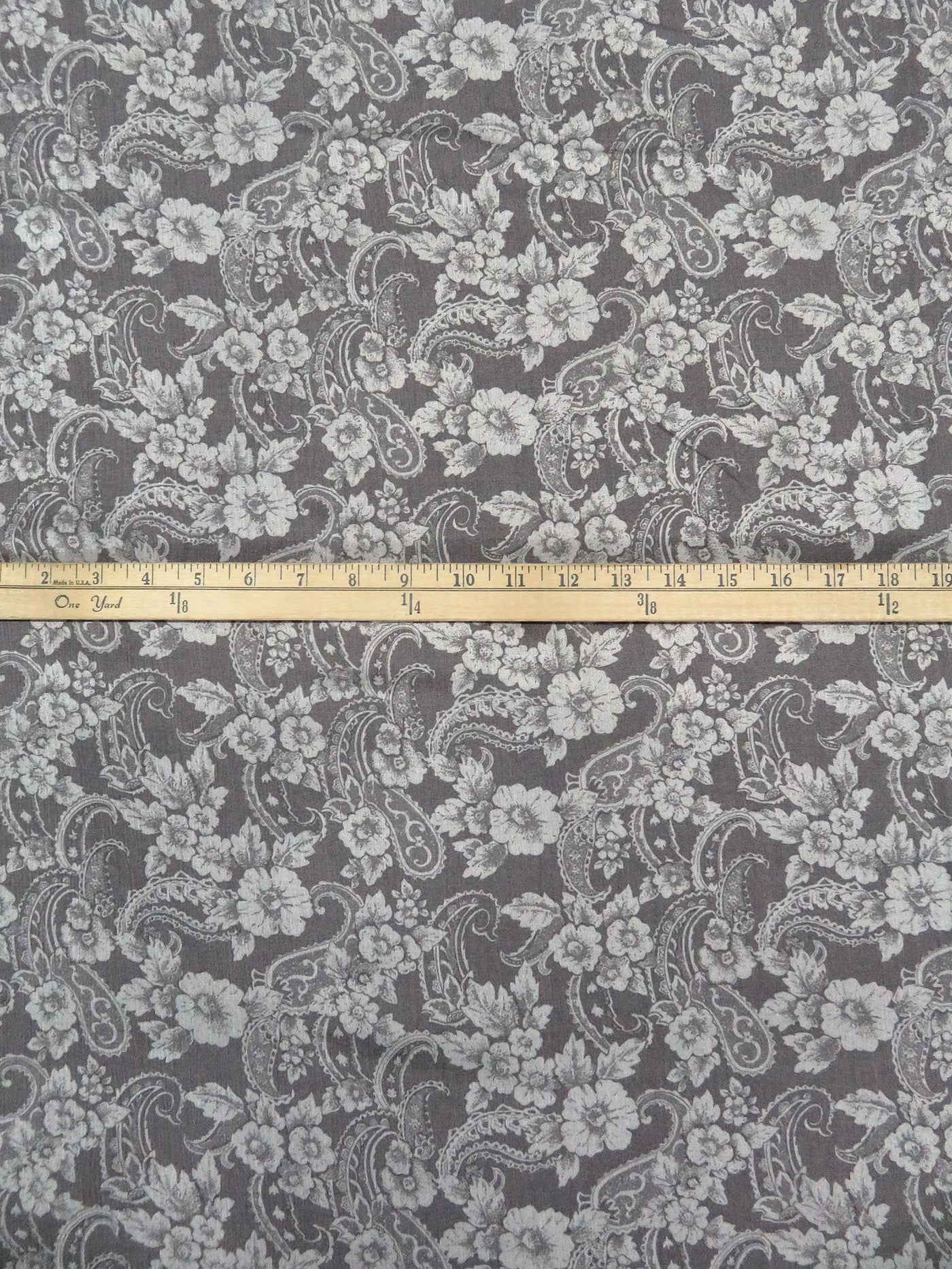 Dark Manatee/Light Gray 100% Rayon Floral & Paisley Print Crinkle Challis - Robert Kaufman - 52W