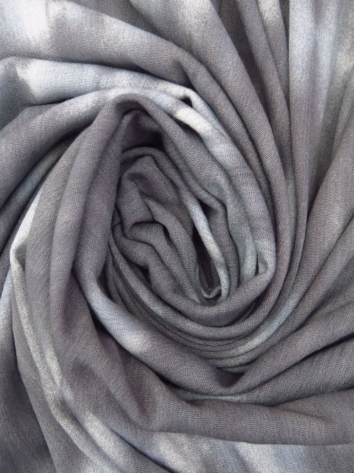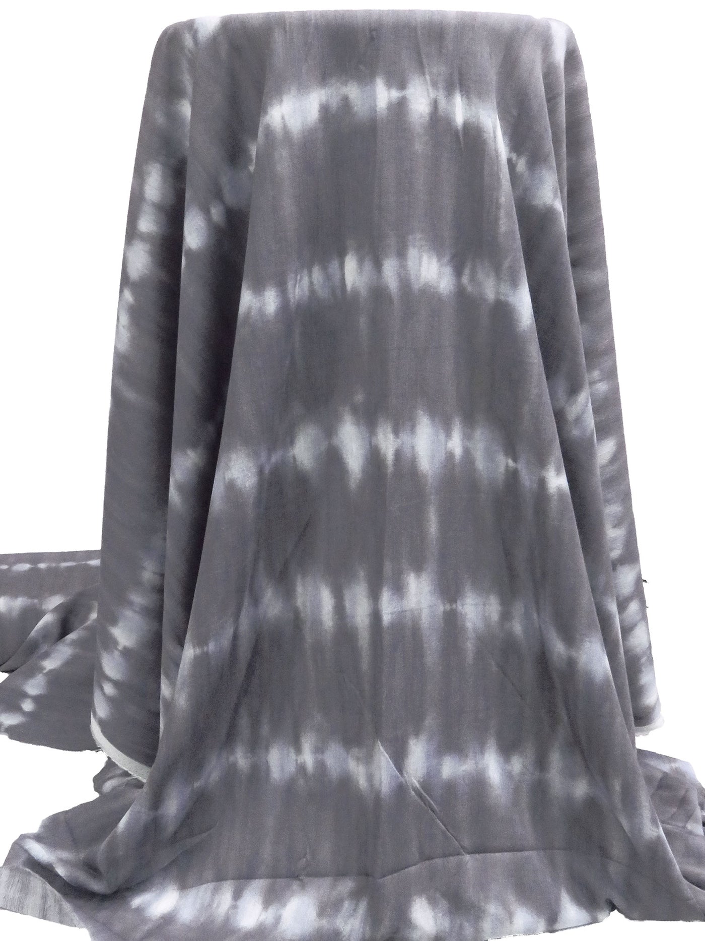 Dim Gray/White/Light Steel Blue 100% Rayon Tie-Dye Look Stripe Print Crinkle Challis 50W