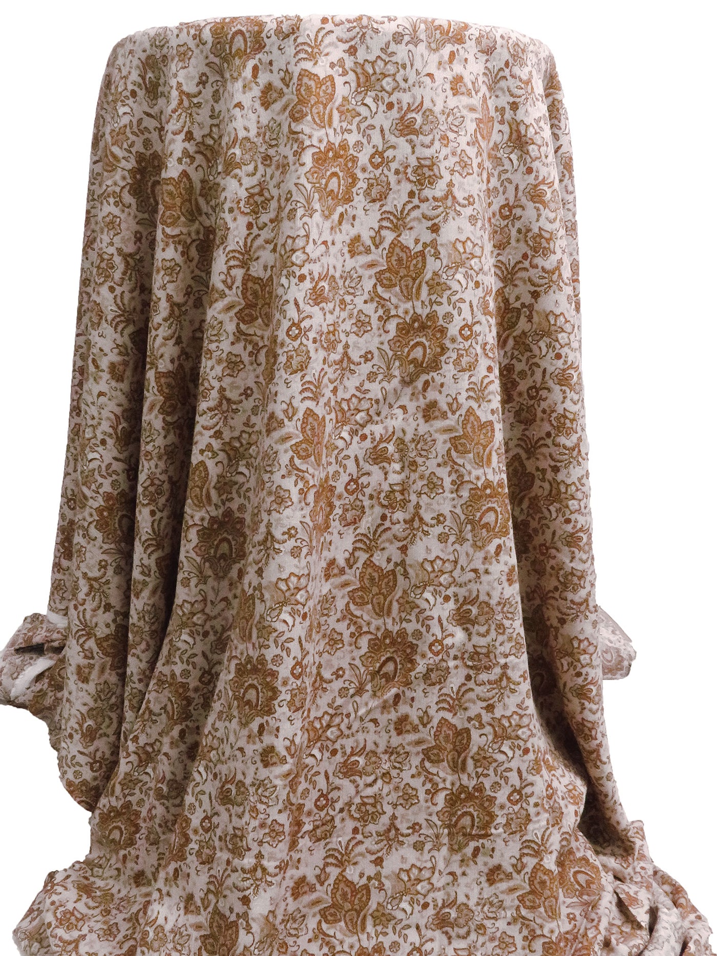 Dusty Light Pink/Pale Taupe/Muted Rust Brown/Multi 100% Rayon Ornate Print Crinkle Challis - Robert Kaufman - 50W