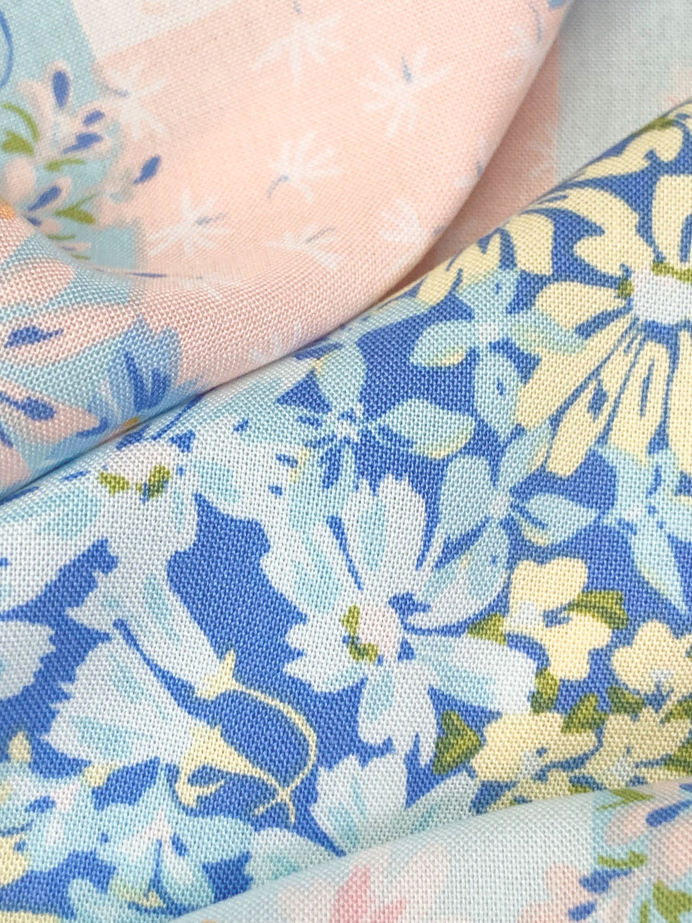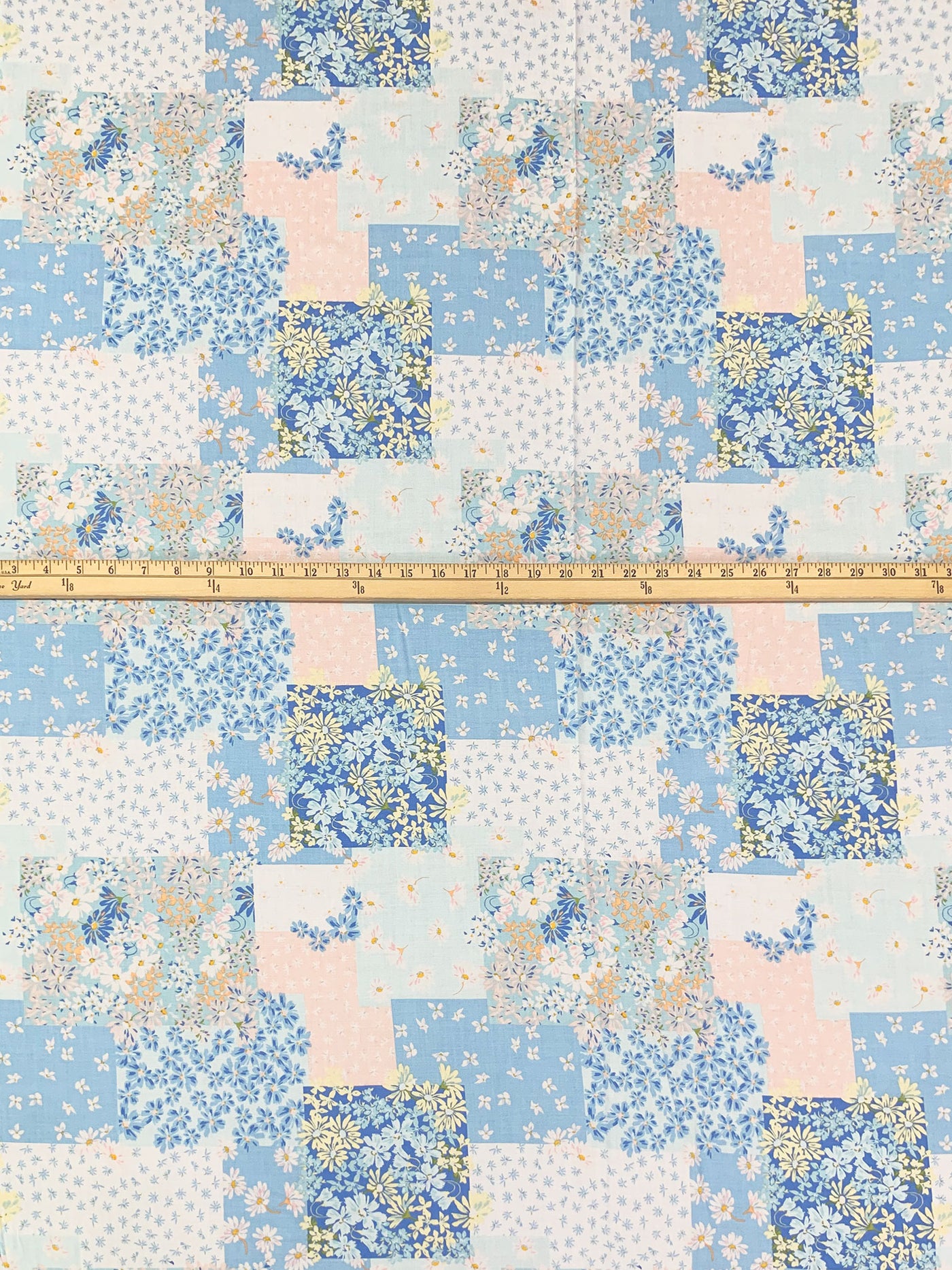 French Blue/Blond/White/Multi 100% Rayon Floral Patchwork Print Challis 56W