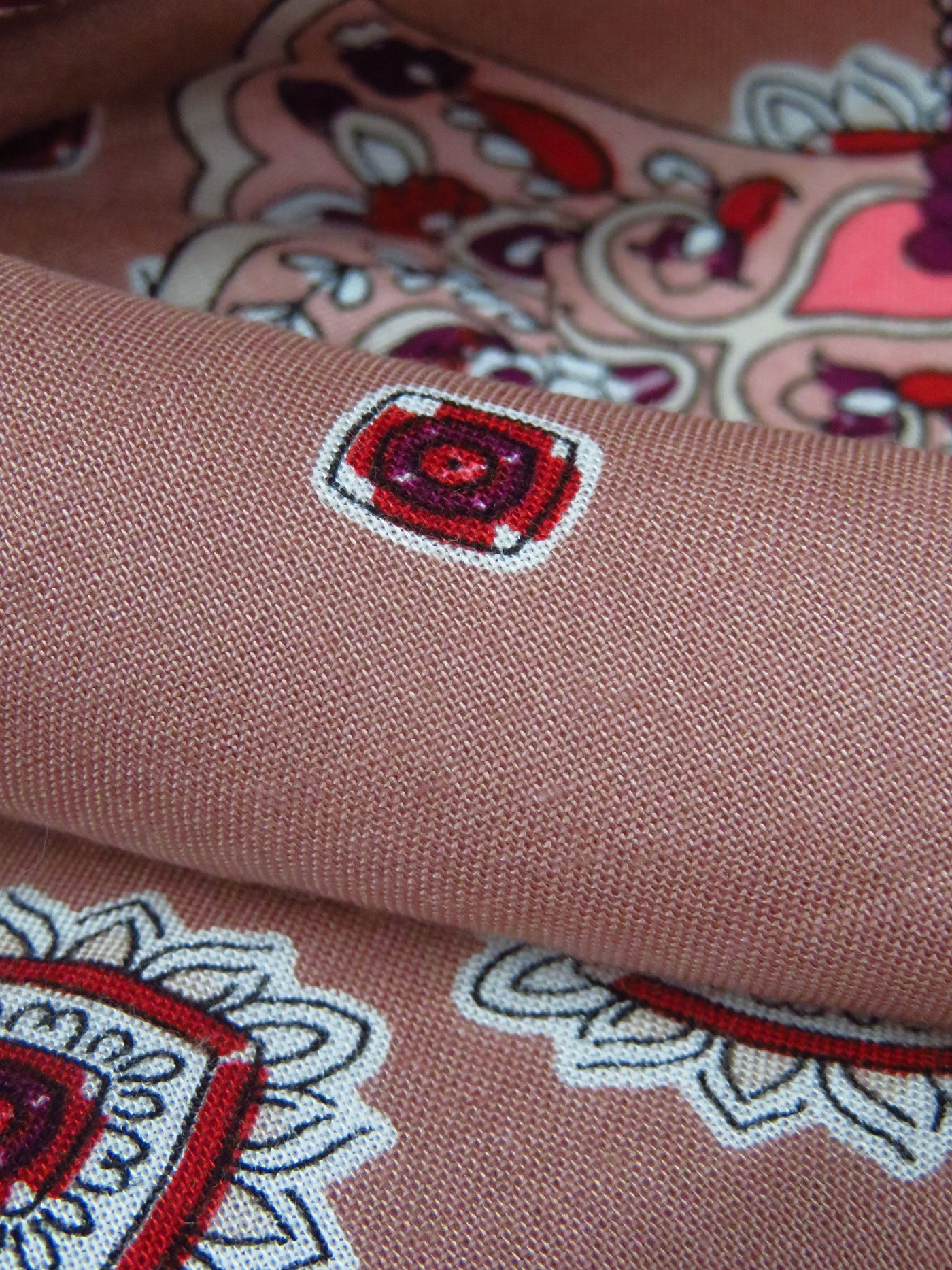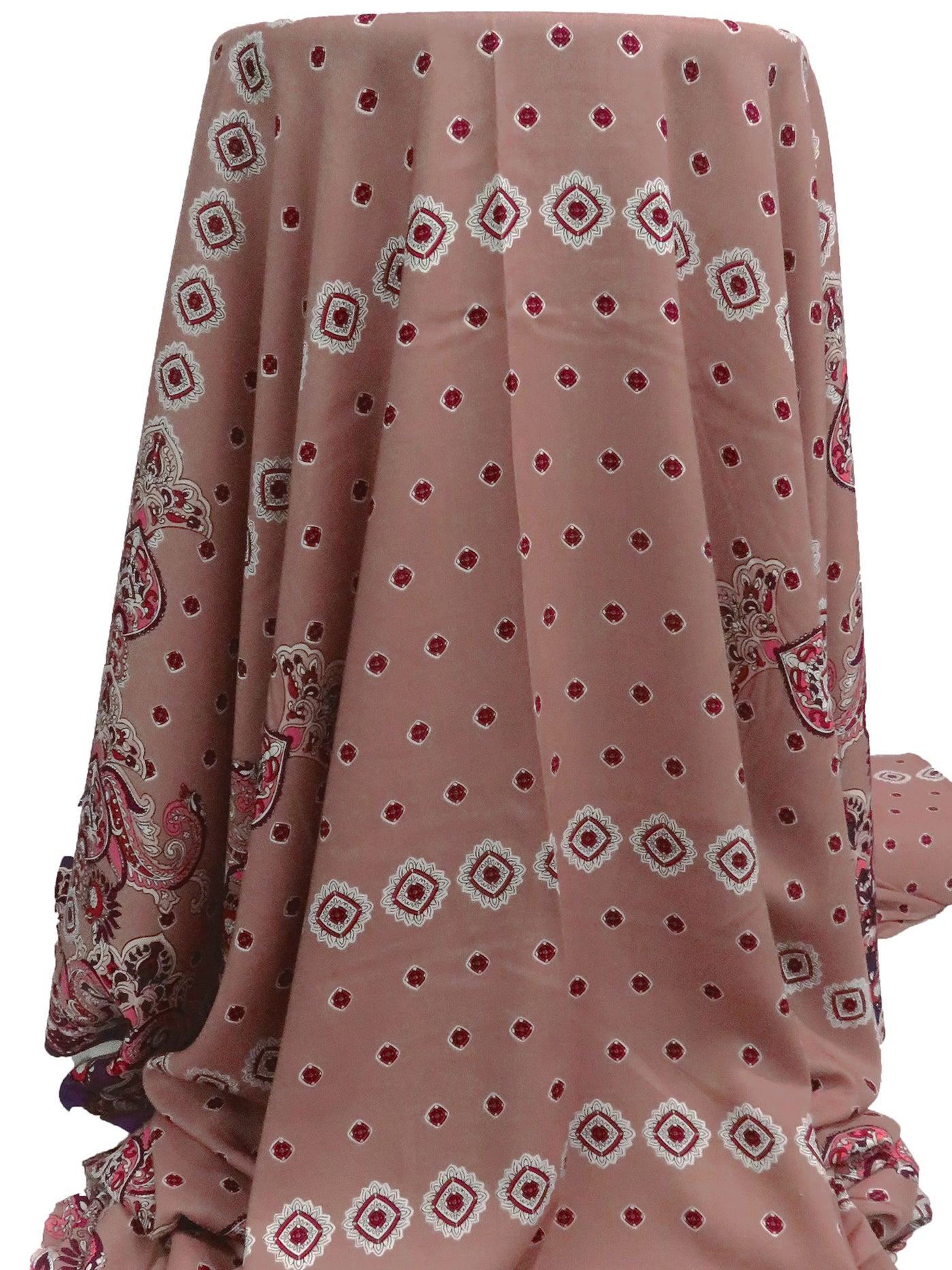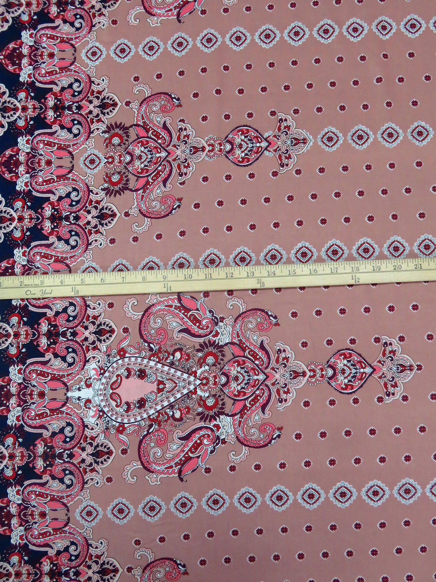 Old Rose/Midnight Navy/Crimson/Multi 100% Rayon Double Border Ornate Print Challis 56W