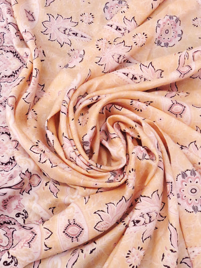 Apricot/Rosey Pink/White/Multi 100% Rayon Ornate Double Border Print Challis 55W