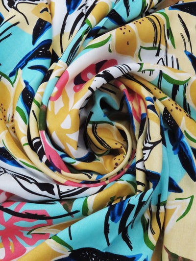 Jasmine Yellow/Bright Aqua Blue/Hot French Pink/Multi 100% Rayon Painterly Floral Print Challis 56W