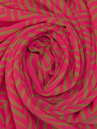 Dark Hot Pink/Coyote Brown 100% Polyester Geometric Print Chiffon 58W
