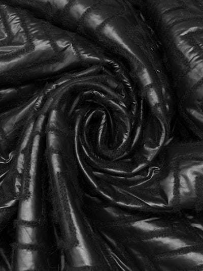 Black Polyester/Wool/Nylon Zig-Zag Felted Coating 58W