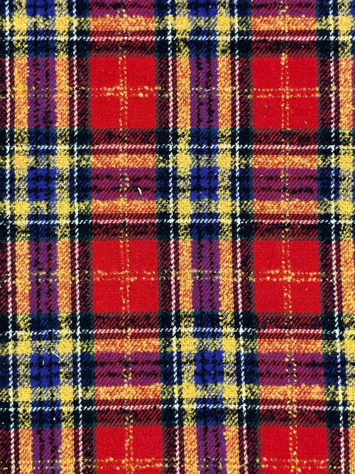 Red/Blue/Yellow/Black Wool/Polyester Tartan Plaid Coating - NY Designer - 58W