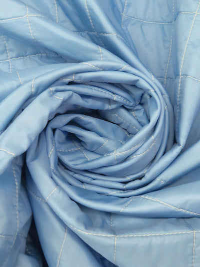 Pale Cerulean/White Cotton/Polyester/Nylon Quilted Square Design Coating - NY Designer - 60W