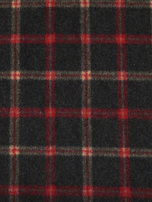 Dark Charcoal/Pale Taupe/Dark Red 100% Wool Plaid Weave Coating 60W