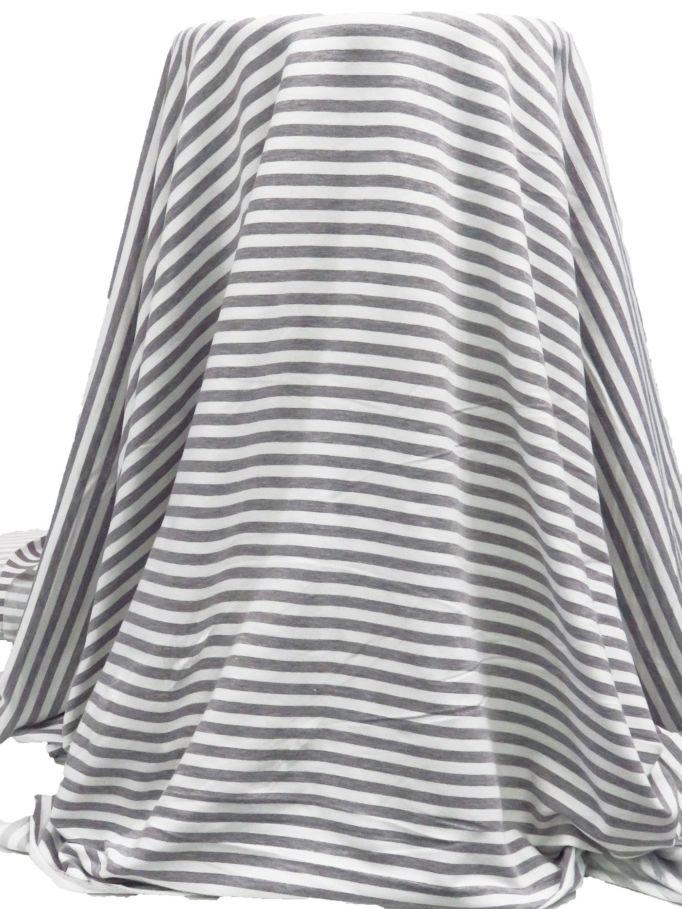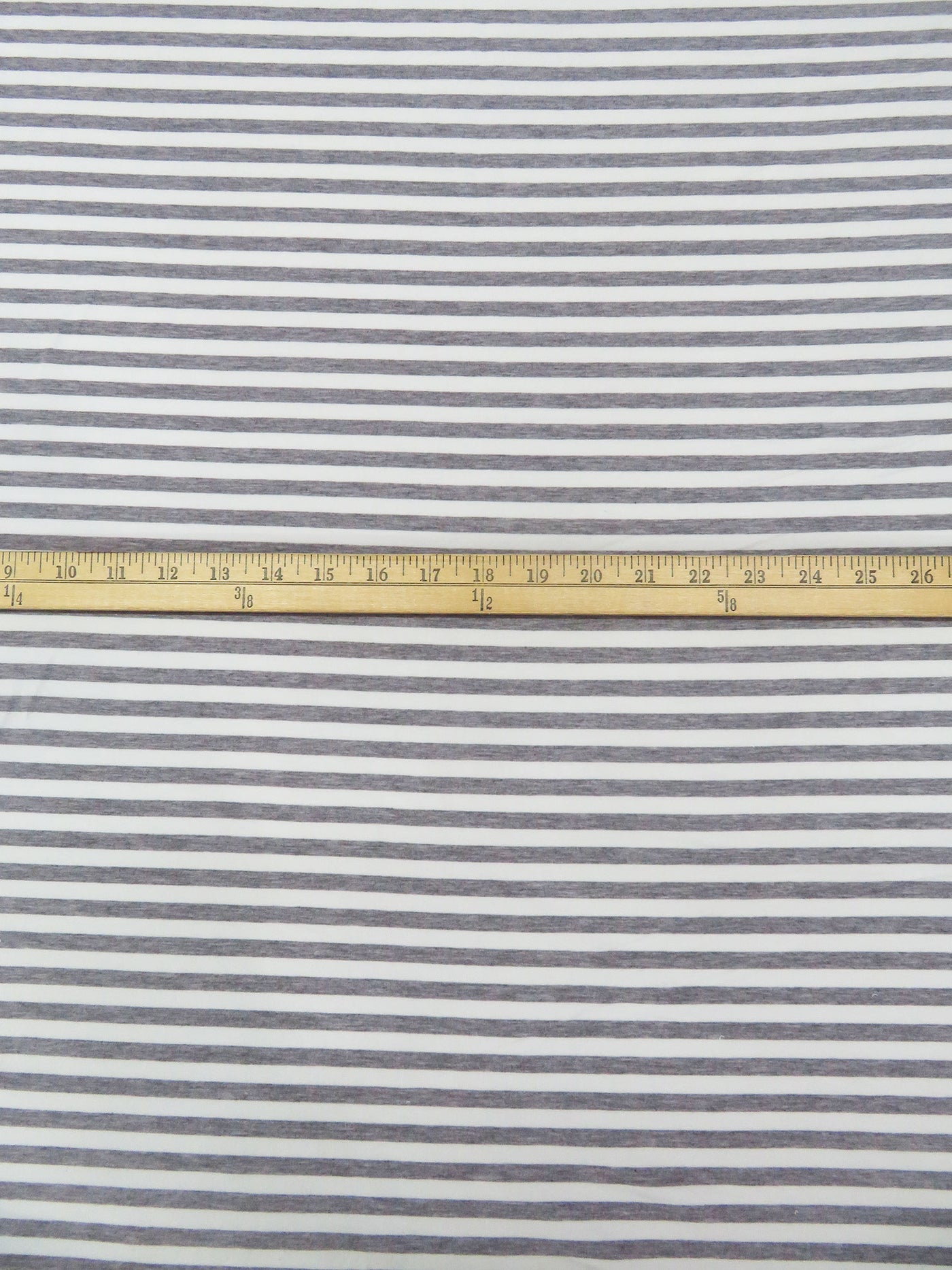 White/Taupe Gray Cotton/Polyester Horizontal Stripe Weave French Terry Knit 62W