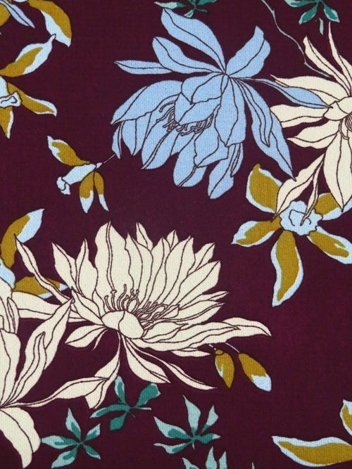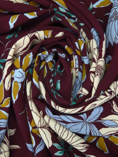 Wine/Pale Sky Blue/Mossy Olive 100% Polyester Vintage Floral Print Bubble Crepe 58W
