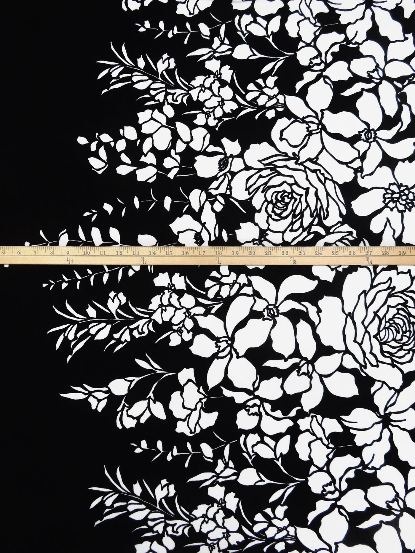 Black/White Polyester/Lycra Large Single Border Floral Print Crepe Double Knit - NY Designer - 58W