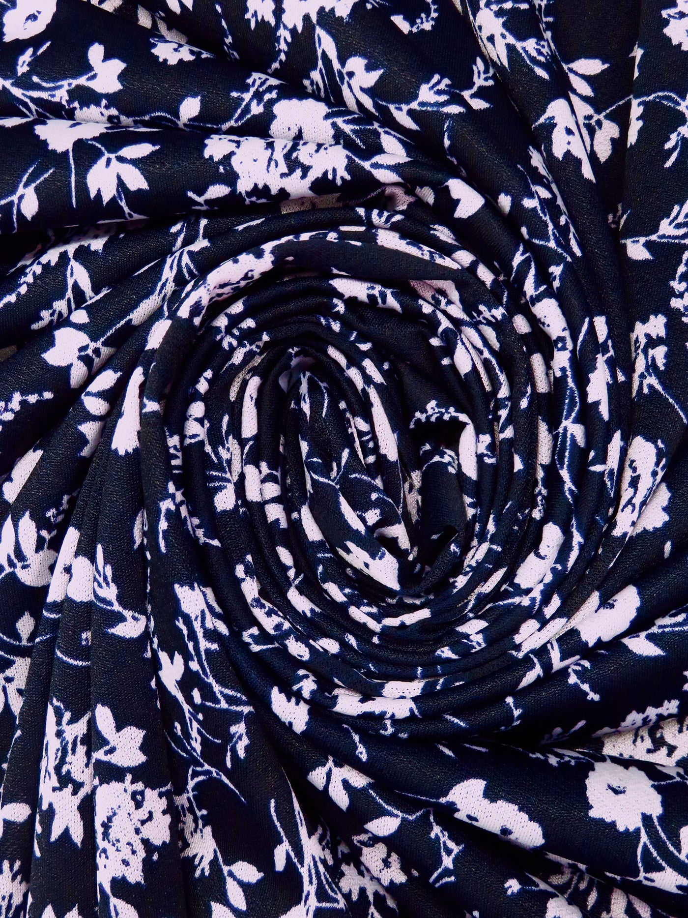 Midnight Navy/Lavender Polyester/Lycra Floral Print Crepe ITY Knit - NY Designer - 59W