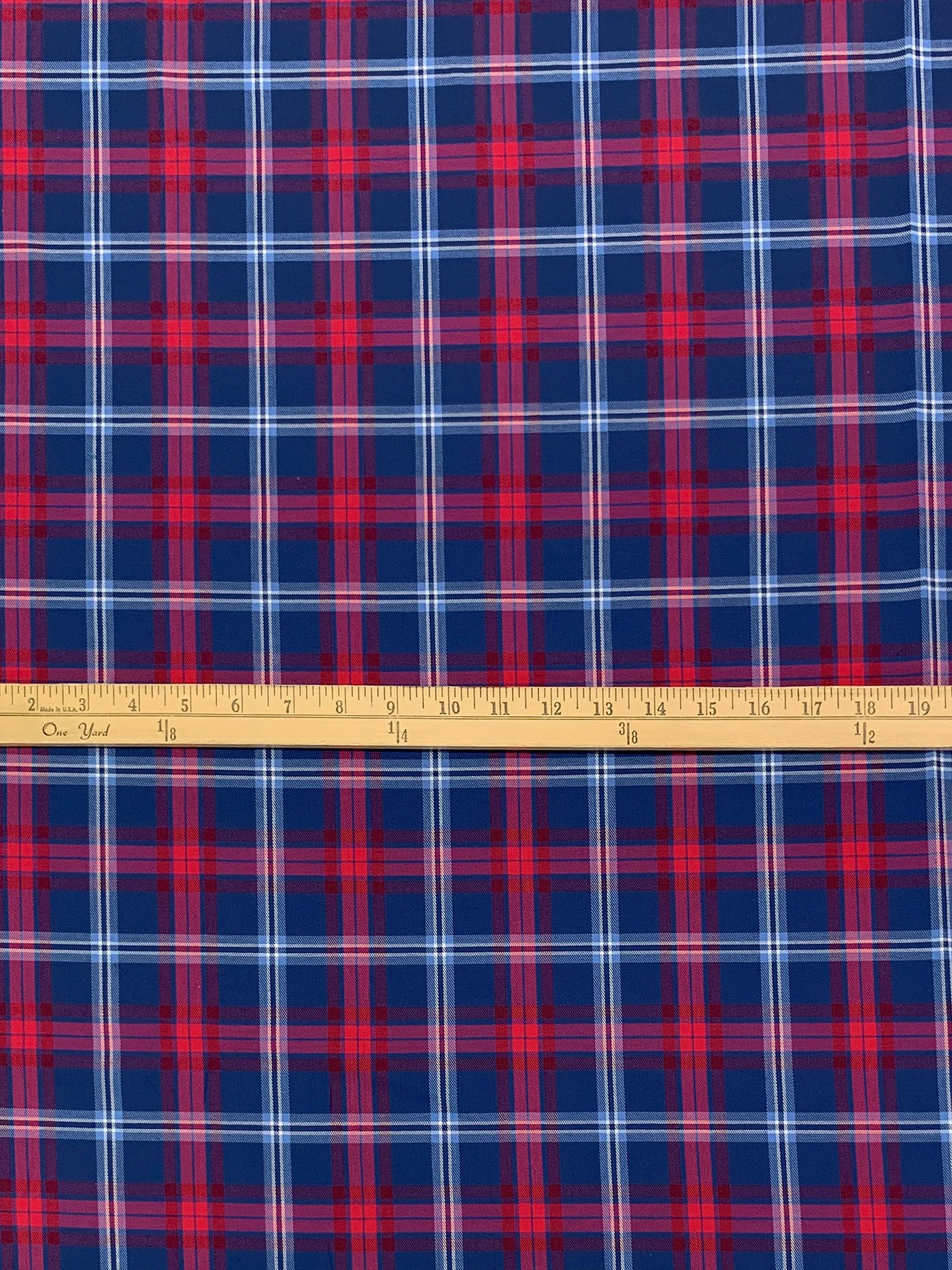 Dark Royal Blue/Vivid Crimson/White 100% Cotton Plaid Weave Yarn-Dyed Shirting - NY Designer - 58W