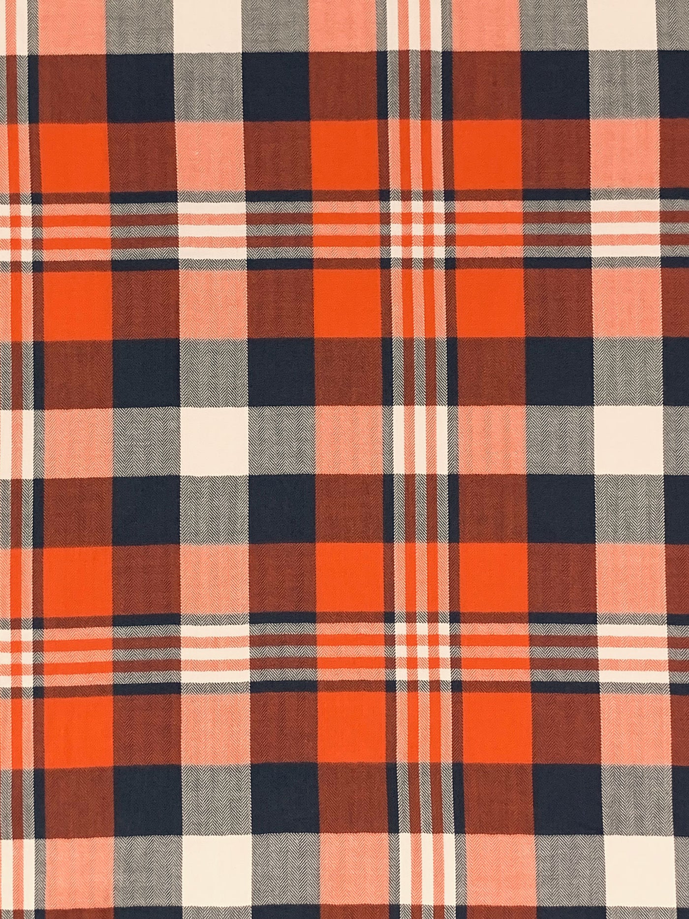 Flame/Muted Navy/Ivory/Multi 100% Cotton Plaid Weave Yarn-Dyed Shirting - NY Designer - 58W