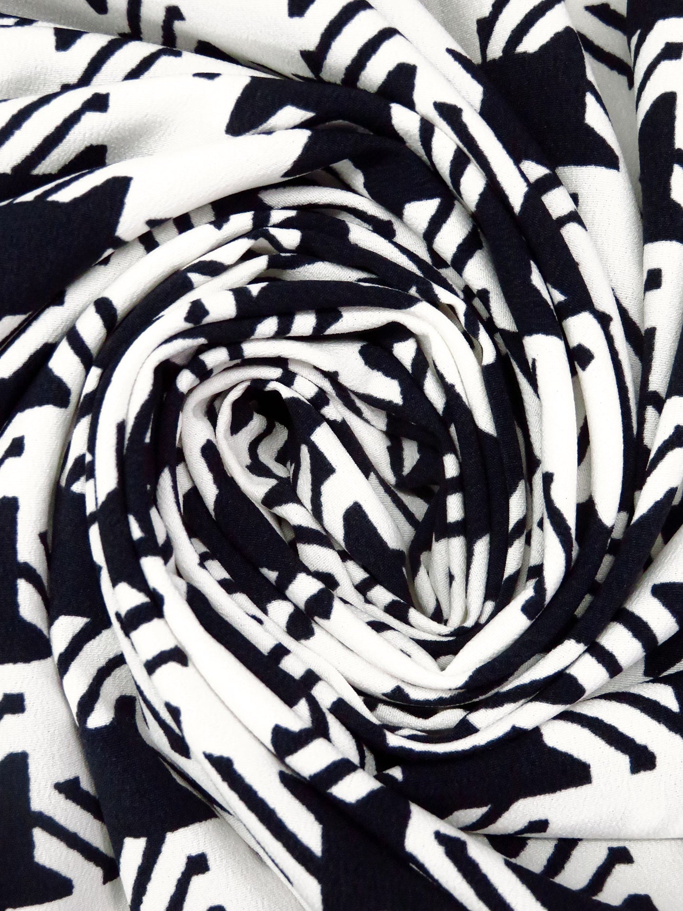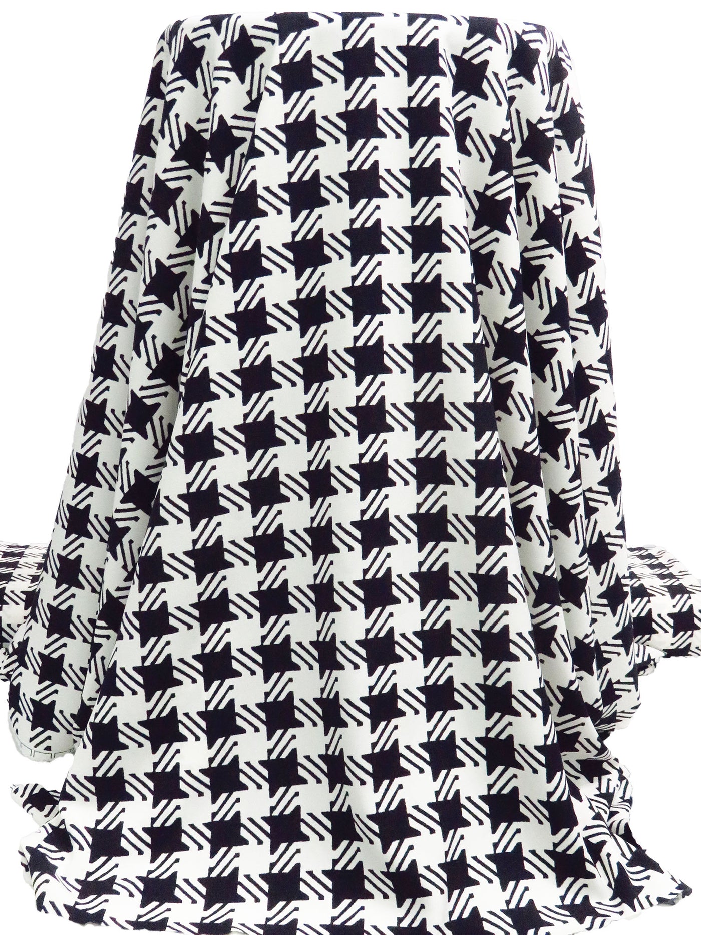 Off-White/Muted Midnight Navy 100% Polyester Novelty Houndstooth Print Crepe de Chine - NY Designer - 60W