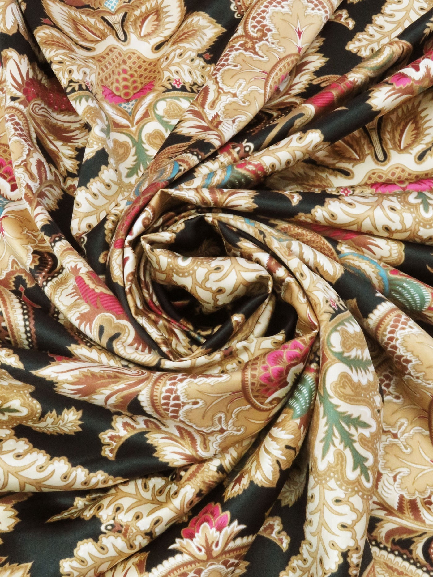 Parchment/Cauldron Black/Dark Sage/Multi Recycled Polyester/Polyester Ornate Damask Print Charmeuse - NY Designer - 56W