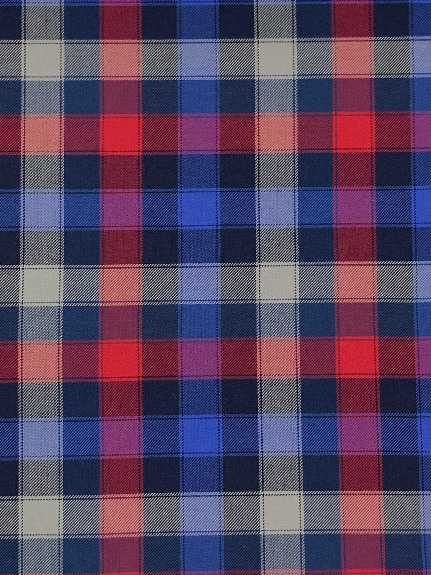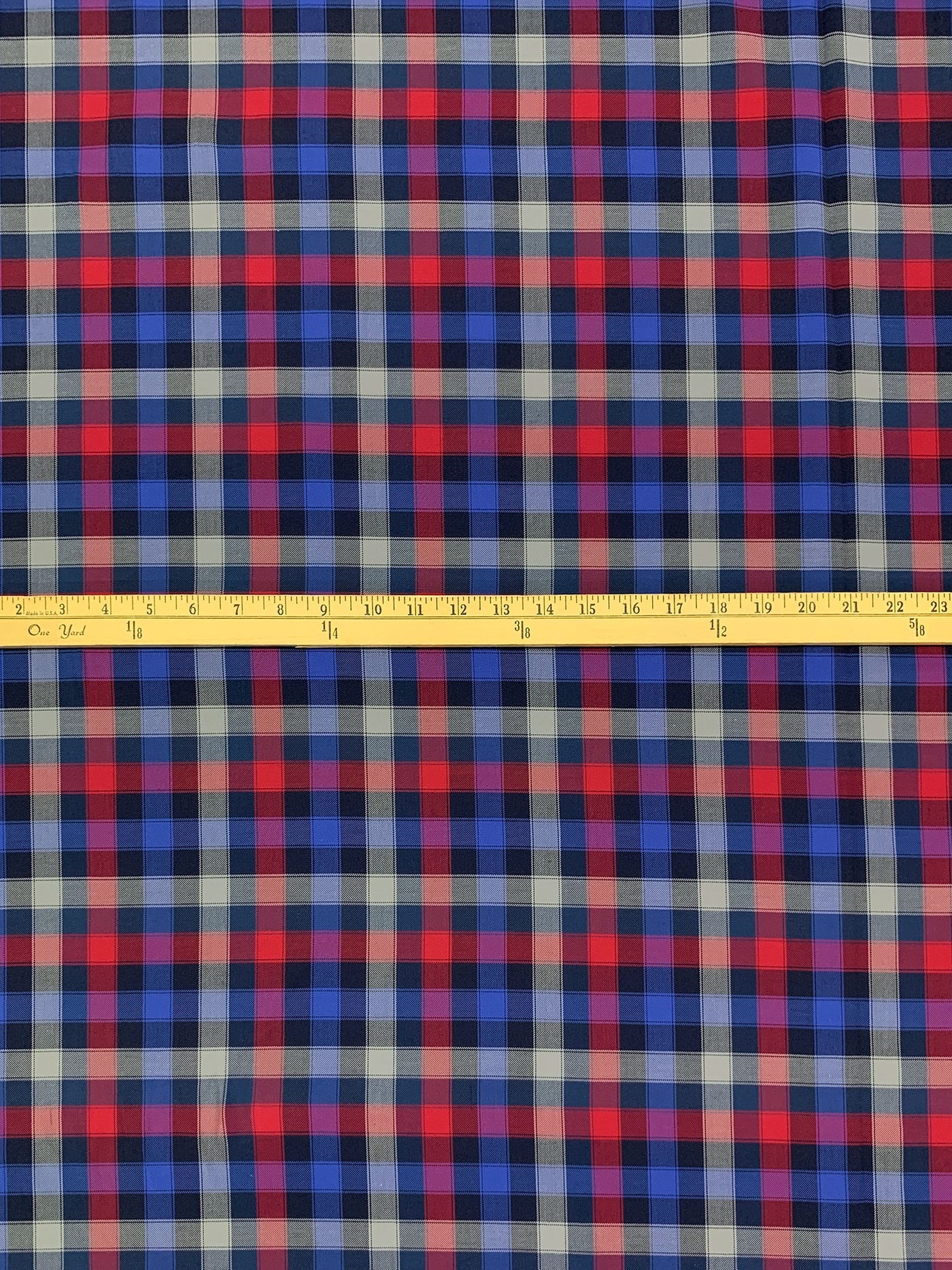 Royal Blue/Amaranth Red/Ash Gray/Multi 100% Cotton Plaid Weave Yarn-Dyed Shirting - NY Designer - 60W