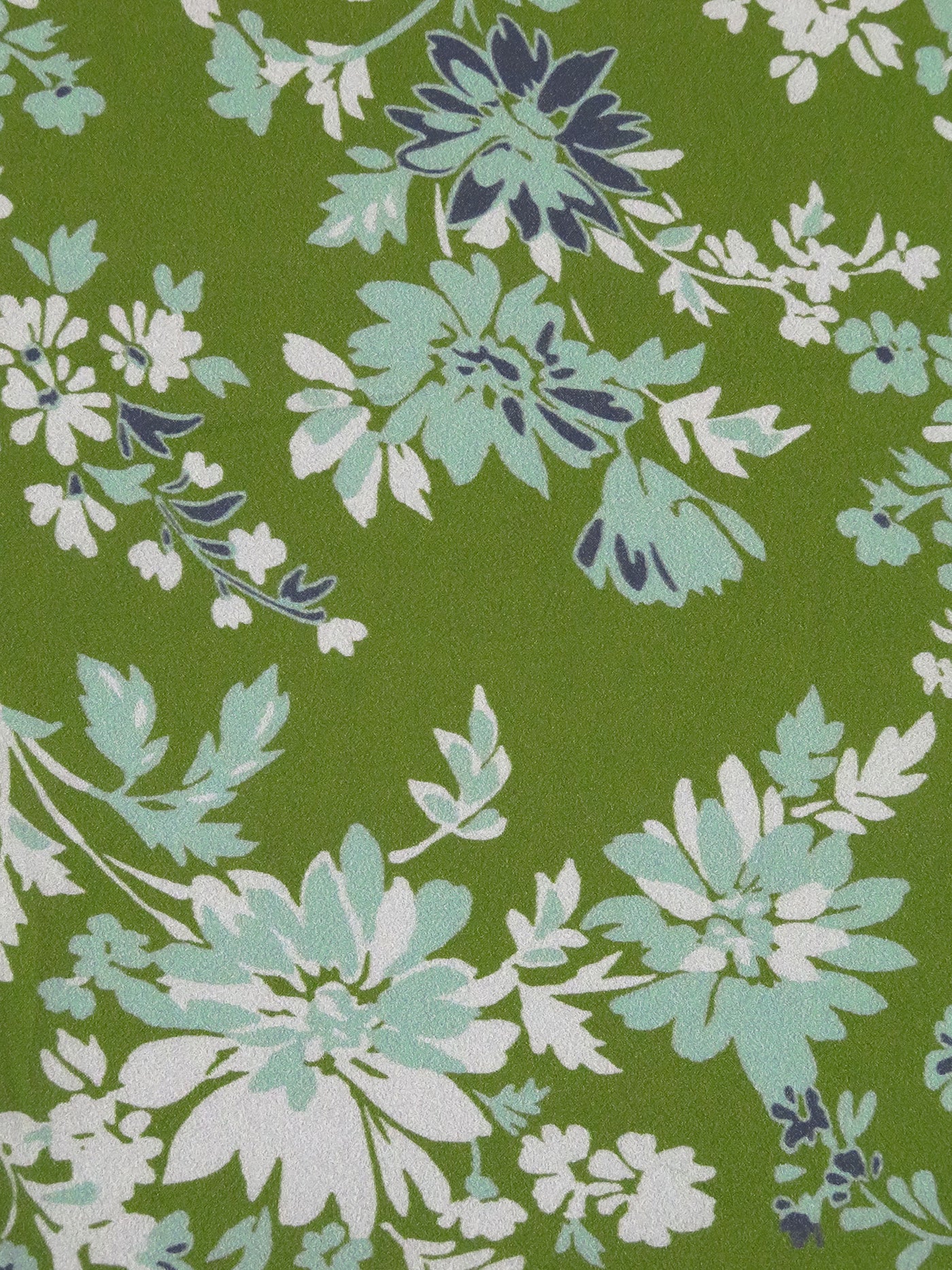 Sap Green/Cambridge Blue/Charcoal Blue/Multi 100% Rayon Floral Print Crepe Challis - NY Designer - 54W