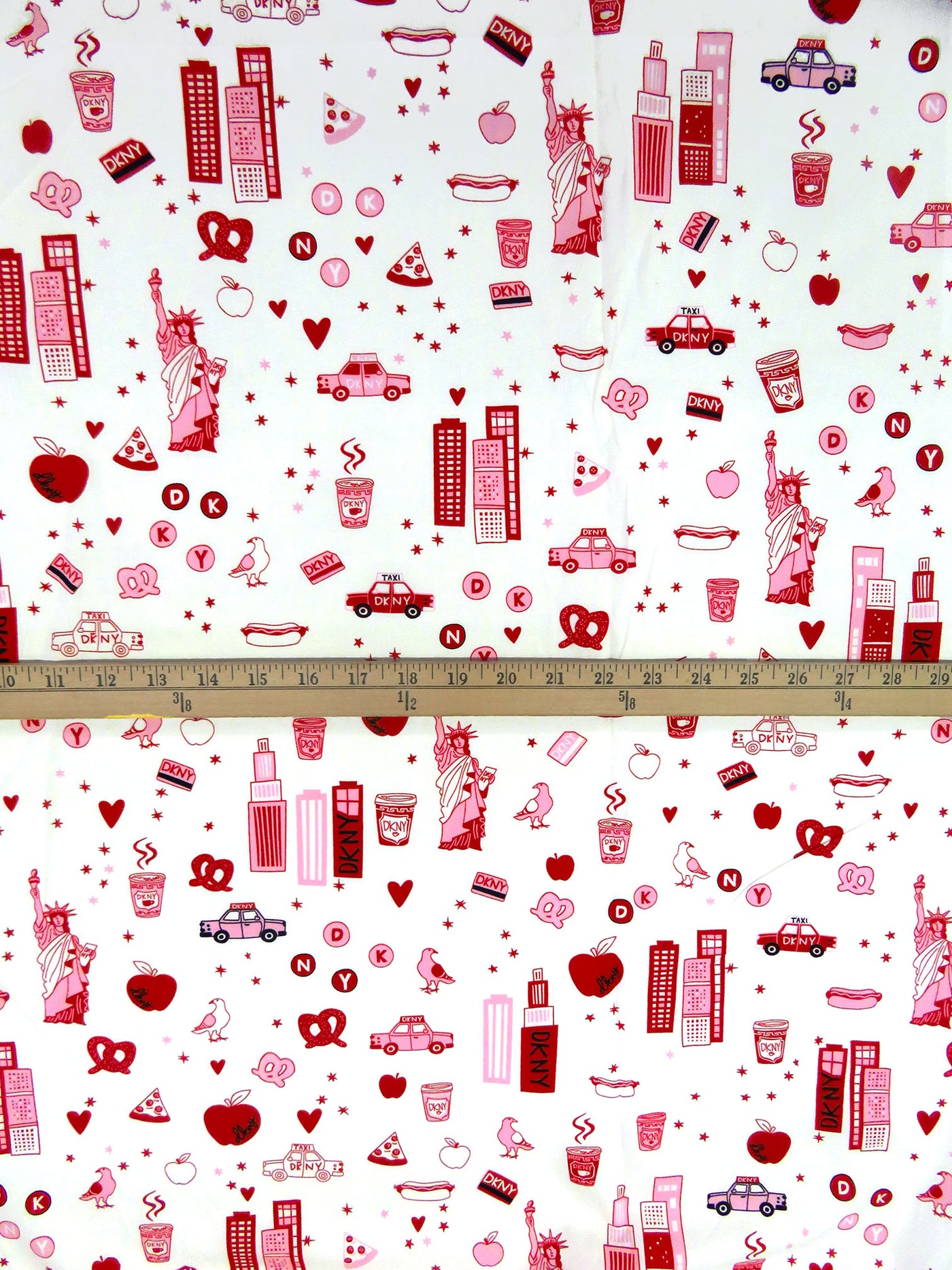 White/Ruby Red/Cotton Candy/Black 100% Cotton Big City Fun Print Lawn - NY Designer - 52W