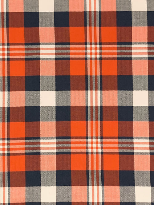Flame/Muted Navy/Ivory/Multi 100% Cotton Plaid Weave Yarn-Dyed Shirting - NY Designer - 58W