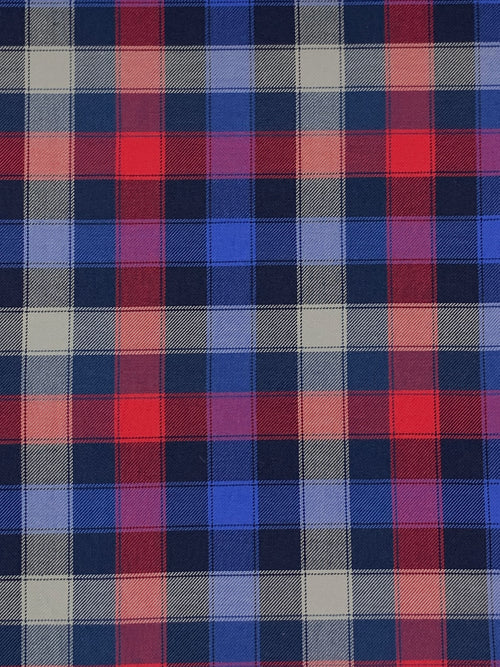 Royal Blue/Amaranth Red/Ash Gray/Multi 100% Cotton Plaid Weave Yarn-Dyed Shirting - NY Designer - 60W