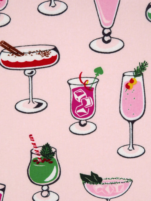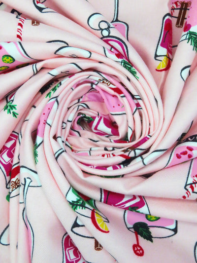 Pale Pink/Jazzberry/Charcoal/Multi 100% Cotton Party Drinks Print Flannel - NY Designer - 54W