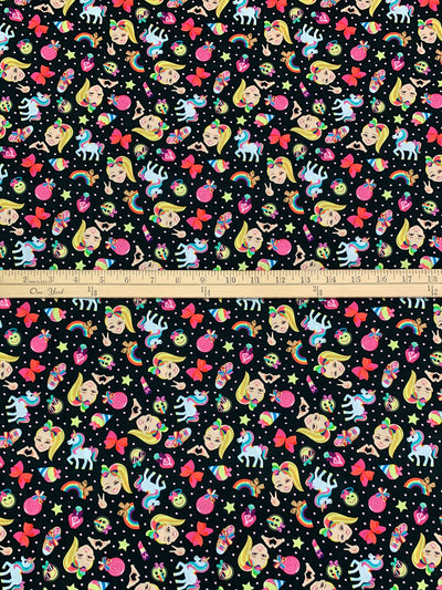 Black/Multi 100% Cotton Jojo Rainbow Emoji Print Quilt Weight Woven 44W