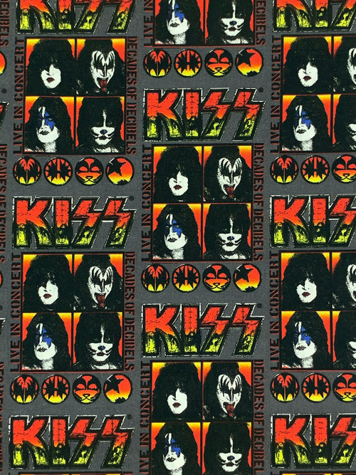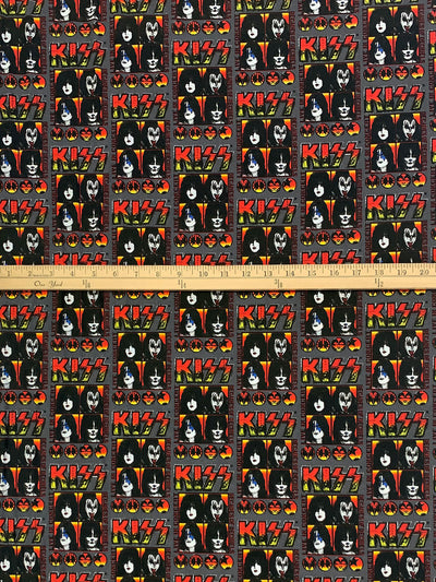 Dark Iron Gray/Flame/Black/Lemon 100% Cotton Kiss Live Decades Of Decibels Print Quilt Weight Woven 42W