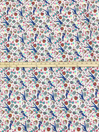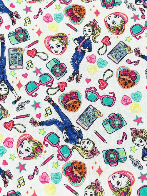 Carribean Green/Yellow/Hot Pink/Multi 100% Cotton Jojo BowBow Emoji Friends Print Quilt Weight Woven 43W