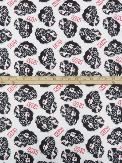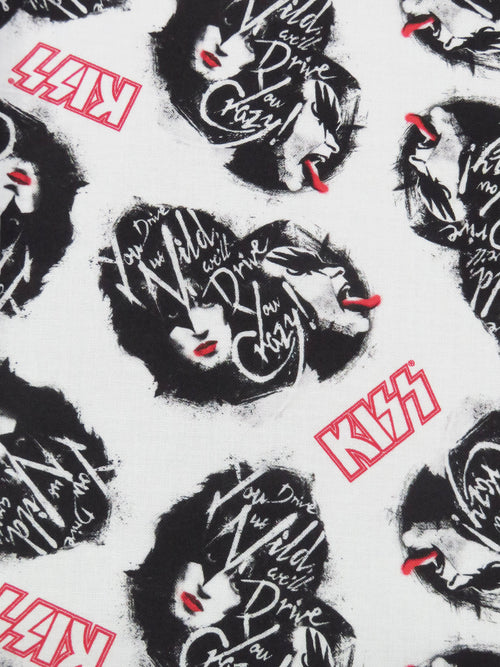White/Black/Cherry Red 100% Cotton Drive You Crazy KISS Print Quilt Weight Woven 44W