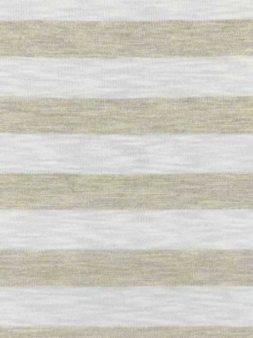 Beige/White Supima Cotton/Rayon Horizontal Stripe Slubbed Tissue Jersey Knit - Michael Stars - 56W