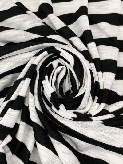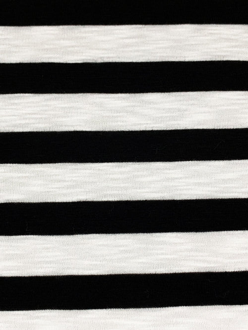 Black/White Supima Cotton/Rayon Horizontal Stripe Slubbed Tissue Jersey Knit - Michael Stars - 54W