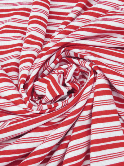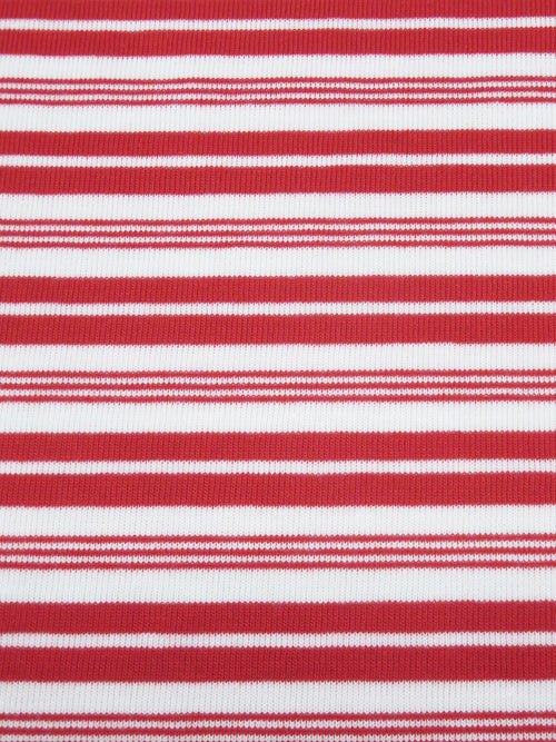 Candy Red/White Cotton/Polyester Horizontal Multi Stripe Weave Jersey Knit 58W