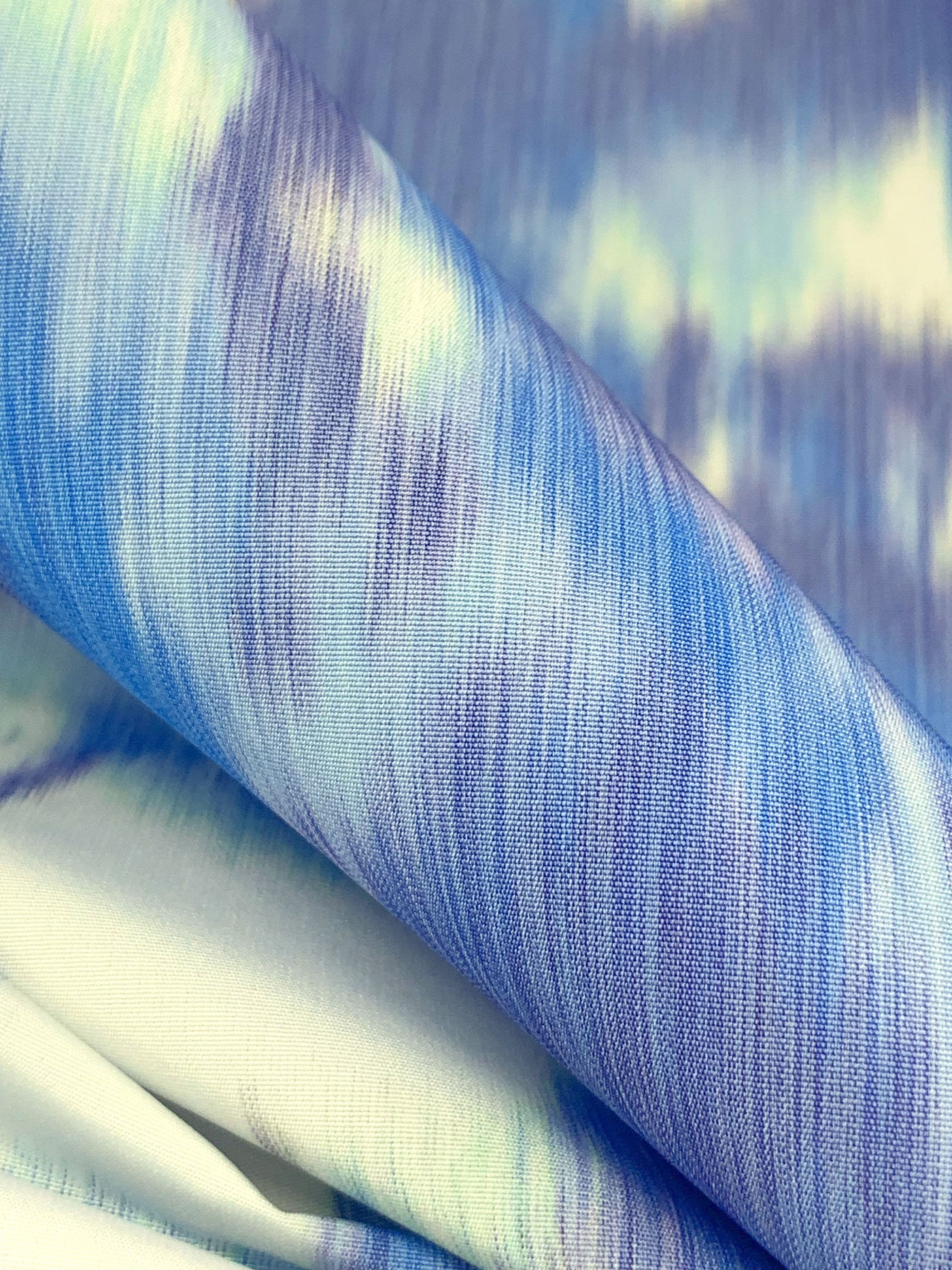 Cool Blue/Off-White 100% Polyester Large Blurred Floral Print Taffeta - Imported From Italy By NY Designer - 59W