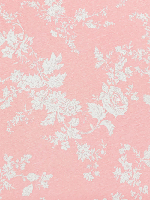 Champagne Pink/White 100% Cotton Floral Print Jersey Knit - NY Designer - 62W