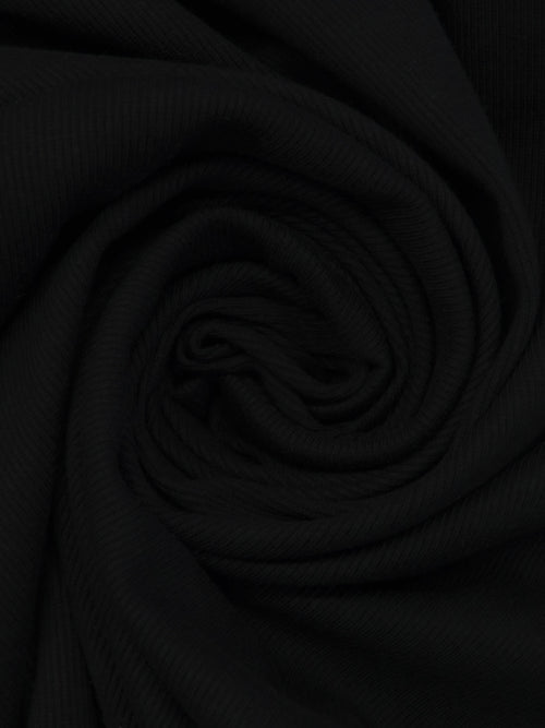 Cool Black Cotton/Lycra 1x1 Rib Knit - NY Designer - 40W
