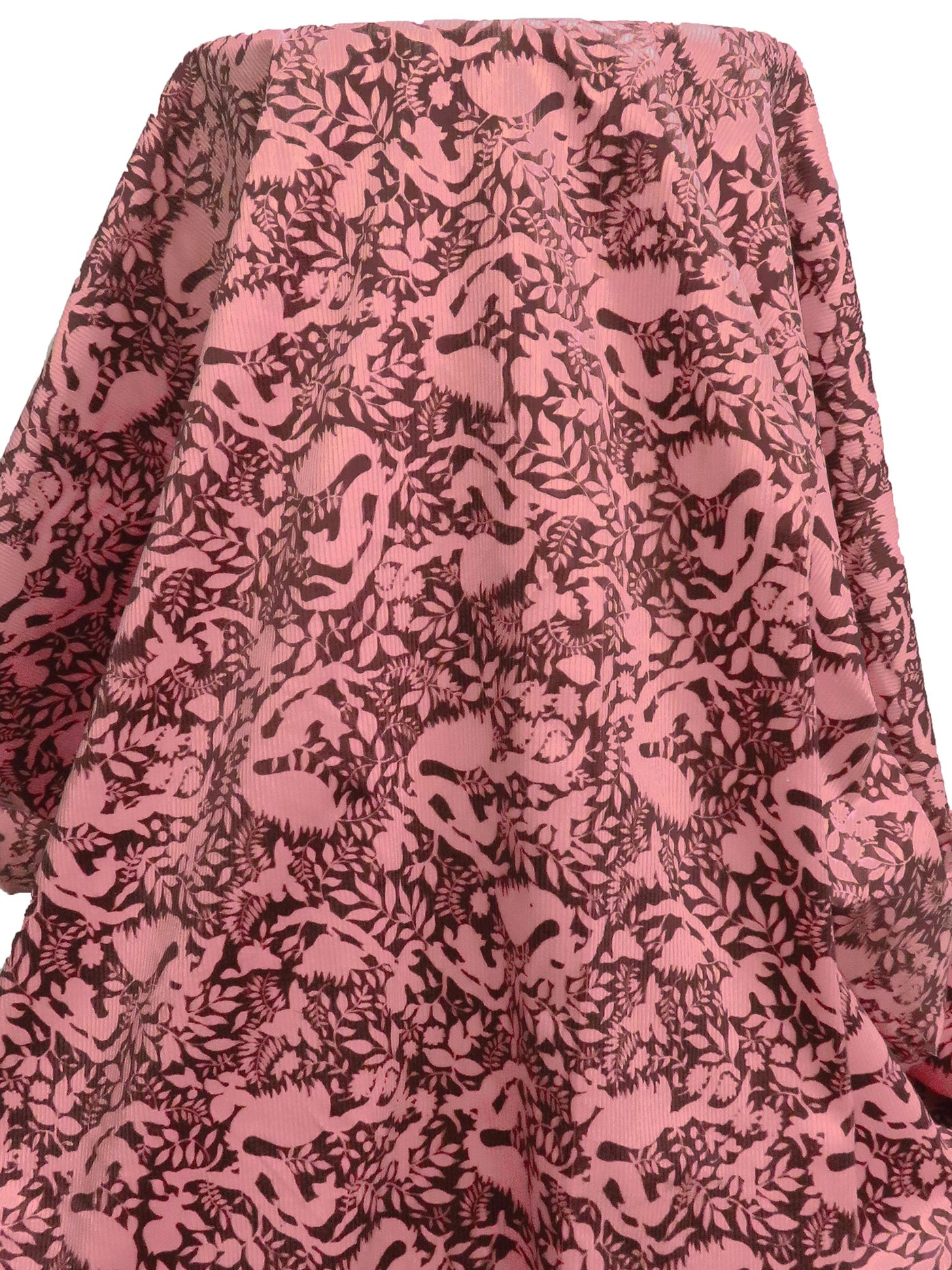 Peach Burst/Royal Brown Cotton/Lycra Woodland Print Stretch Corduroy 51W