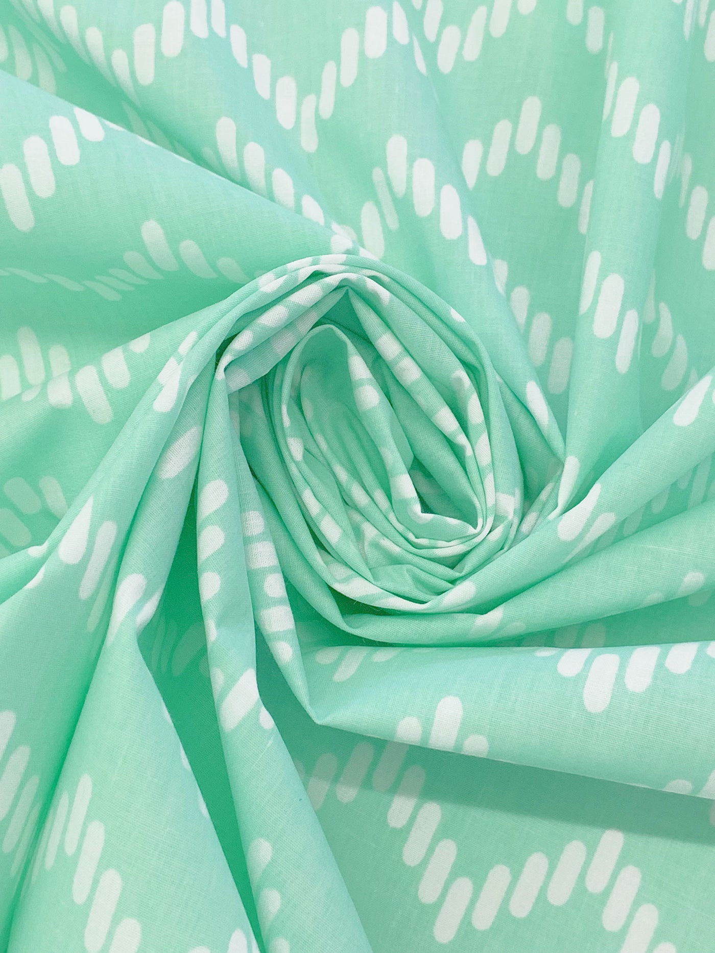Soft Sea Glass Green/White Polyester/Cotton Chevron Print Broadcloth 58W