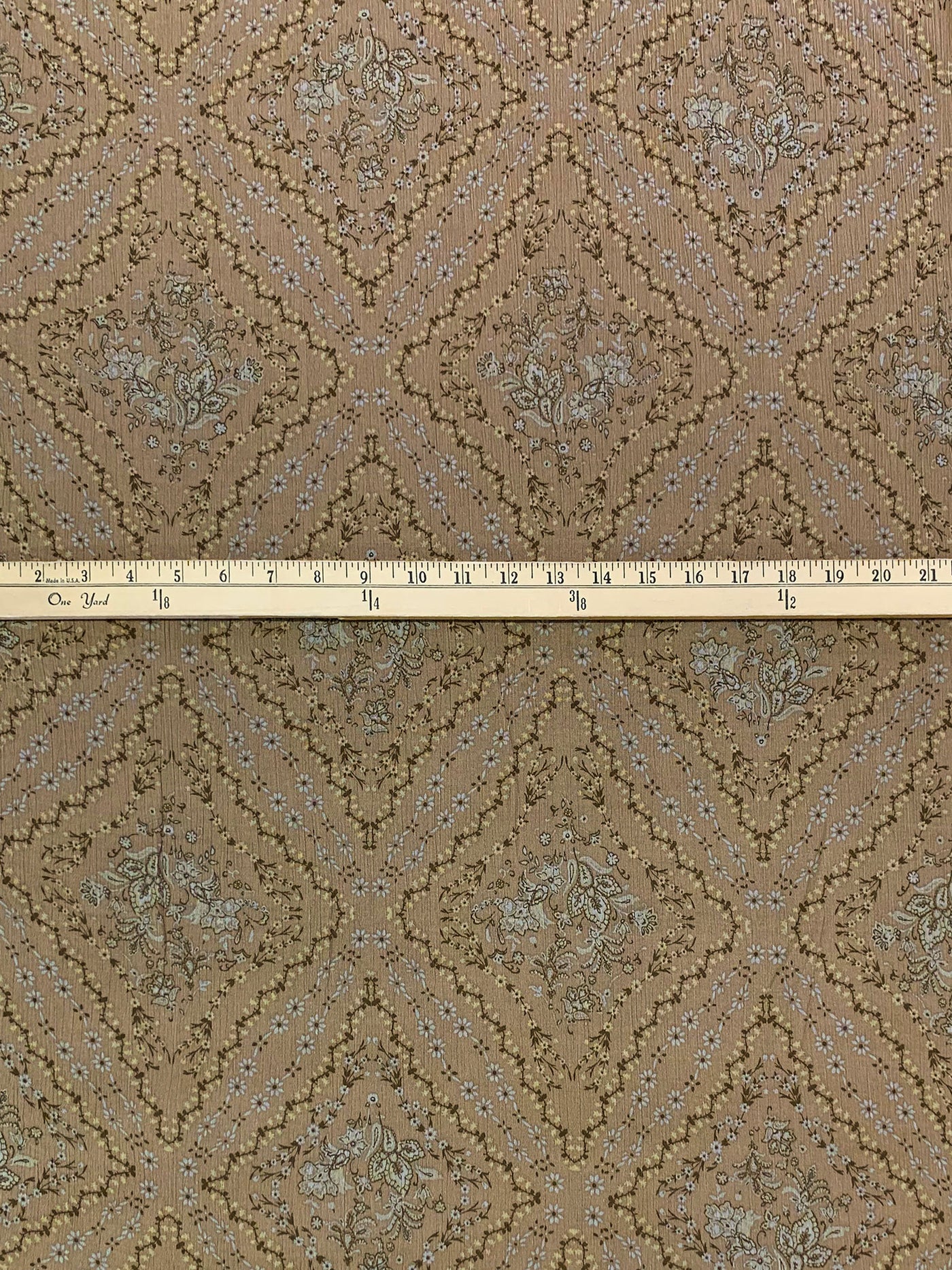 Taupe/Dark Sandstone 100% Rayon Floral Diamond Print Crinkle Challis - Robert Kaufman - 52W
