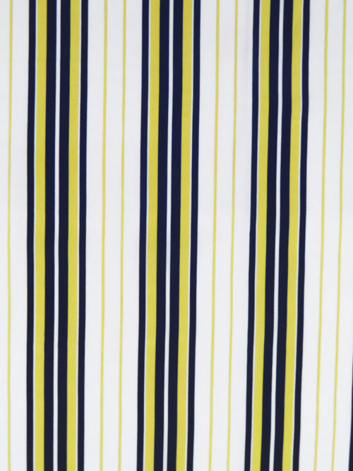 White/Old Gold/Midnight Navy Cotton/Lycra Vertical Stripe Print Stretch Poplin Shirting 56W