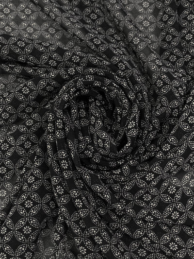 Black/White 100% Polyester Small Floral Medallion Print Georgette 56W
