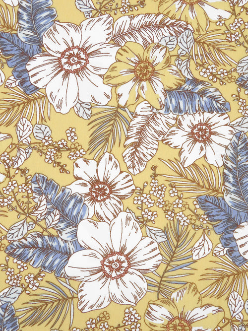 Butter/Cornflower/White/Multi 100% Polyester Tropical Floral Print Bubble Crepe 56W
