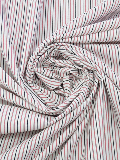 White/Salmon/Black Cotton/Polyester Vertical Stripe Shirting 58W
