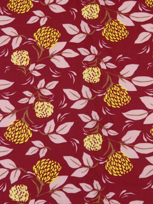 Vivid Auburn/Dandelion/Light Rose Beige 100% Cotton Floral Print Poplin Shirting 60W