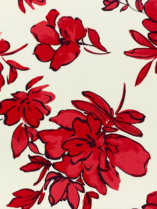 Deep Carmine/Terracotta Peach/White/Black 100% Rayon Floral Print Challis 54W