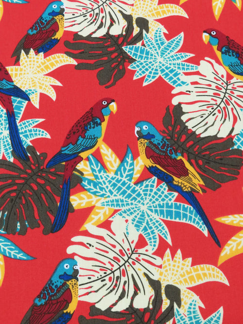 Scarlet/Cerulean/Pale Celery Green/Multi 100% Cotton Tropical Parrot Print Poplin Shirting 56W