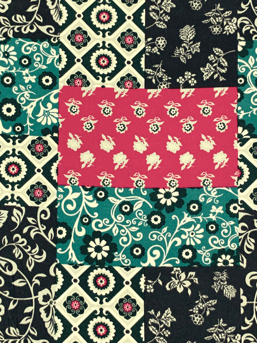 Raspberry/Pine Green/Muted Cream/Multi 100% Polyester Multi-Floral Print Crepe de Chine 58W