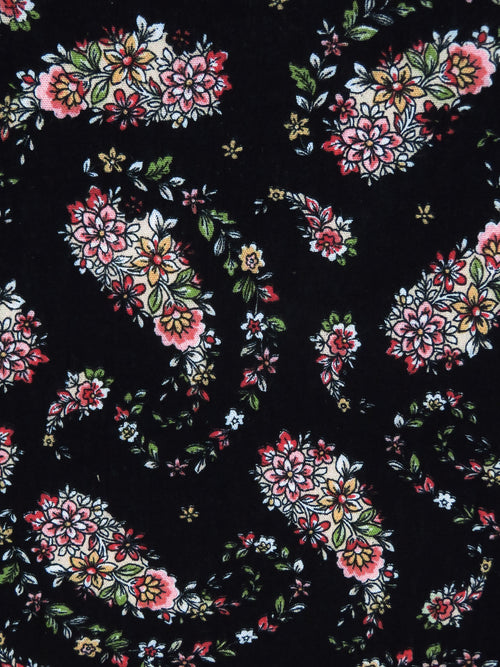 Black/Begonia/Sap Green/Multi 100% Rayon Paisley Shape Floral Print Crinkle Challis 52W