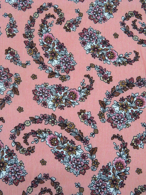 Peachy Pink/Dark Dusty Rose/Black/Multi 100% Rayon Paisley Shape Floral Print Crinkle Challis 52W